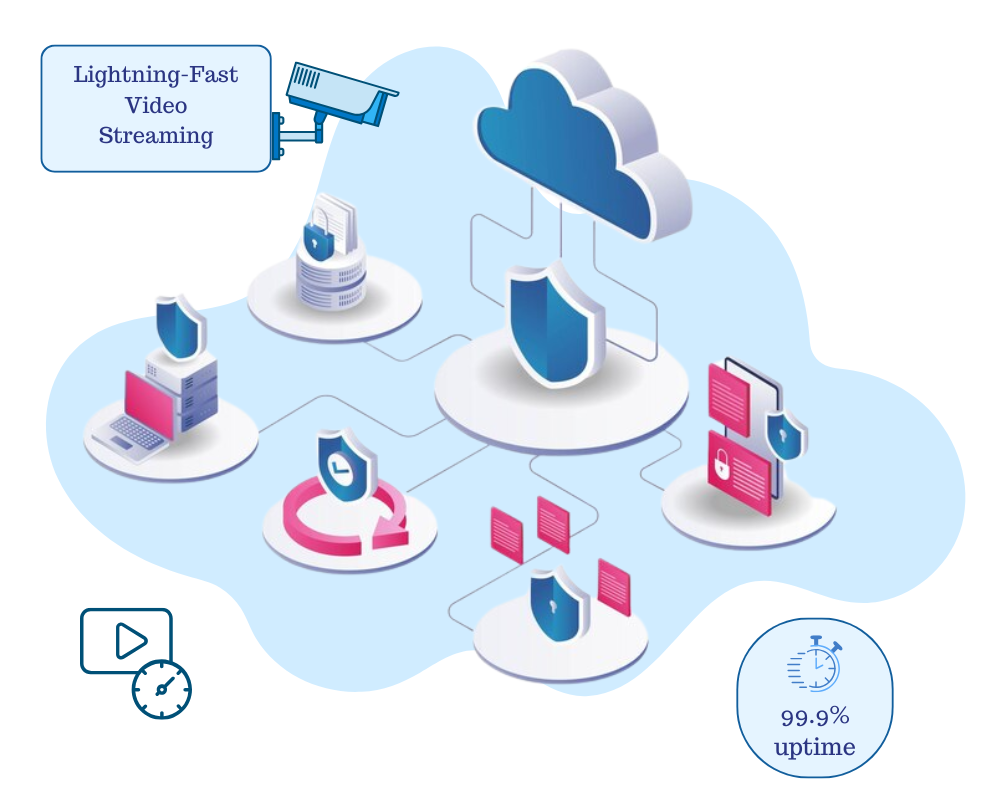 Our infrastructure is tailored for high-quality video streaming and storage, ensuring smooth performance for your CCTV systems.